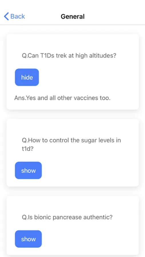 This app provides information related to type 1 diabetes and it is not meant to replace medical treatment. Seek a doctor’s advice in addition to using this app and before making any medical decisions.