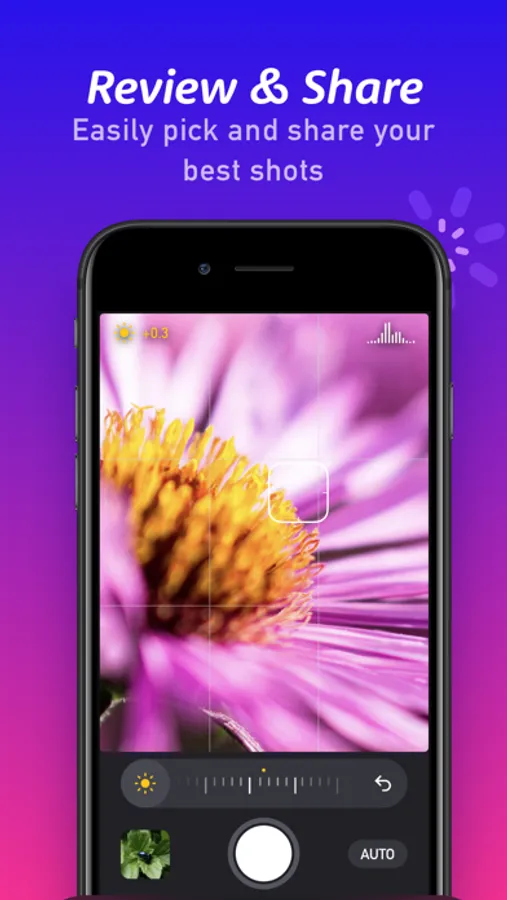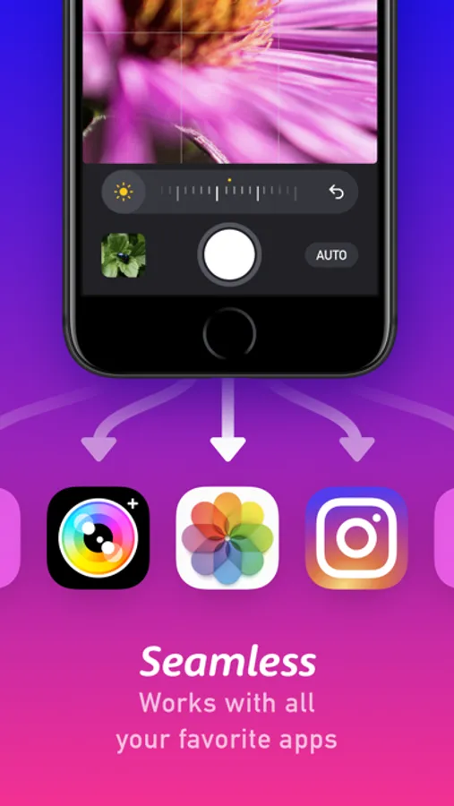 The controls in Macro by Camera+ are laser focused and powerfully aimed at getting the perfect up-close image in crystal clear focus. It includes manually controlled focus and EV so you can precisely control the focus and brightness of your photo.