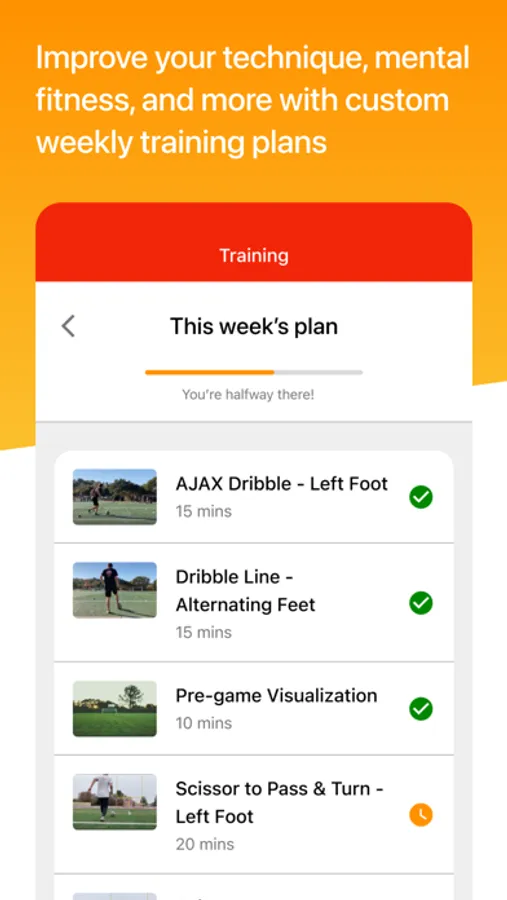 - Weekly custom built training plans. Each week you will get individual drills that your pro coach prescribes to you based on feedback from your coaching sessions. Know exactly what to work on and your coach will help you track your progress every single week.