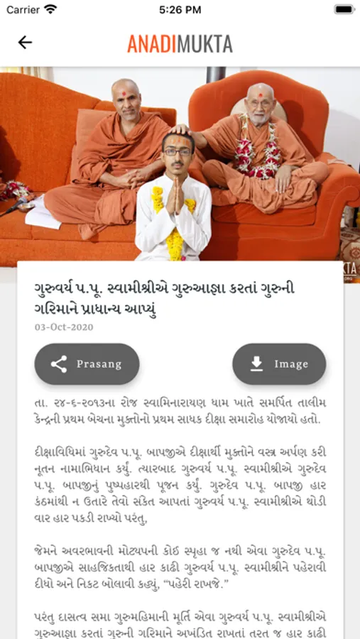 The "Anadimukta App" is a free Spiritual guide app designed by SMVS Swaminarayan Sanstha for reading and learning Divine Prasangs of Swaminarayan Bhagwan, HDH Bapji, HDH Swamishri, and other distinguished spiritual luminaries. It is ideal for those who are constantly on the move, enabling them to receive spiritual nourishment no matter where they are. Download "Anadimukta App" and experience self-presence directly with the Divinity in all places and at all times.