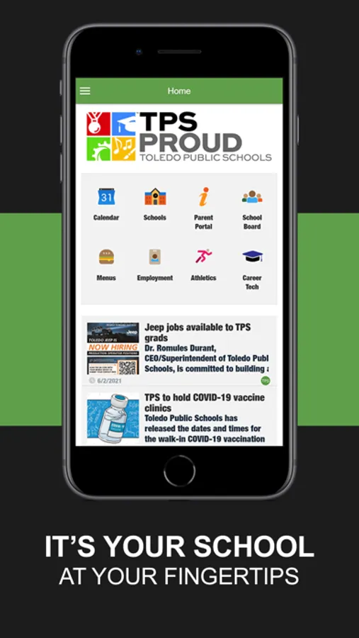 With the Toledo Public Schools mobile app, your school district comes alive with the touch of a button. Easily navigate through current news and events or check out the latest updates with social media. Quickly retrieve contact information, sporting scores, lunch menus, and more! It’s your school district available at your fingertips.
