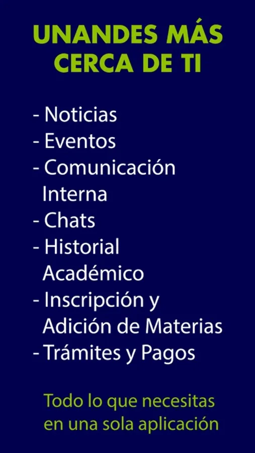 APP UNANDES es la respuesta inteligente a tu experiencia universitaria. La aplicación ofrece información esencial de la Universidad de Los Andes – Bolivia. Incluye: noticias actuales, chats y foros de interacción con las áreas administrativas y académicas. Permite acciones como: Asignación e inscripción a materias, seguimiento de trámites, información financiera y académica. Inscripción y registro a eventos, cursos, seminarios y talleres.