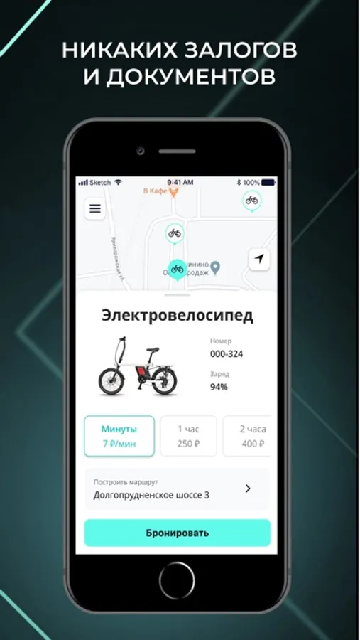 - Найди на карте в приложении ближайший к тебе электровелосипед.