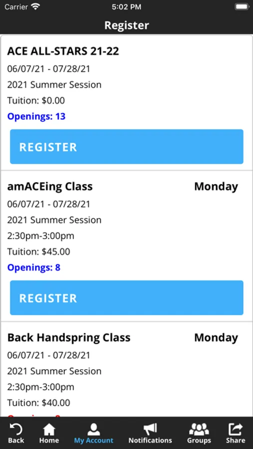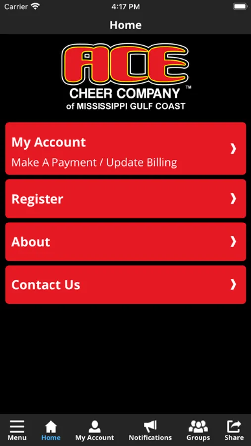 The ACE Cheer Company app allows you to manage your account with ease, register for classes, parties and special events. You'll also receive important notification about class changes, closings, registration openings, special announcements, and upcoming events.