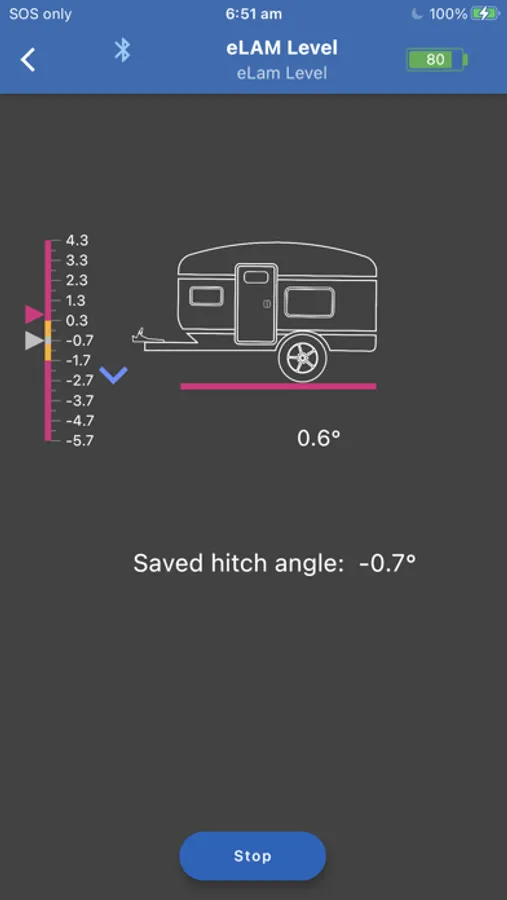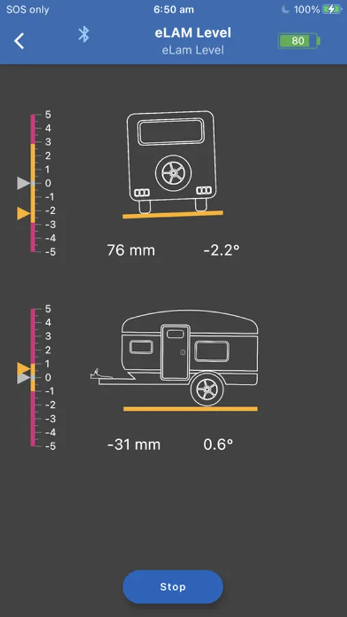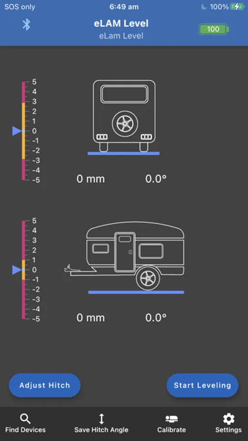 The eLam Level works with the eLam Level device placed in your caravan or trailer to assist with finding close to level ground within your ramp height and finally allows you to visually level you caravan or trailer from within your car.