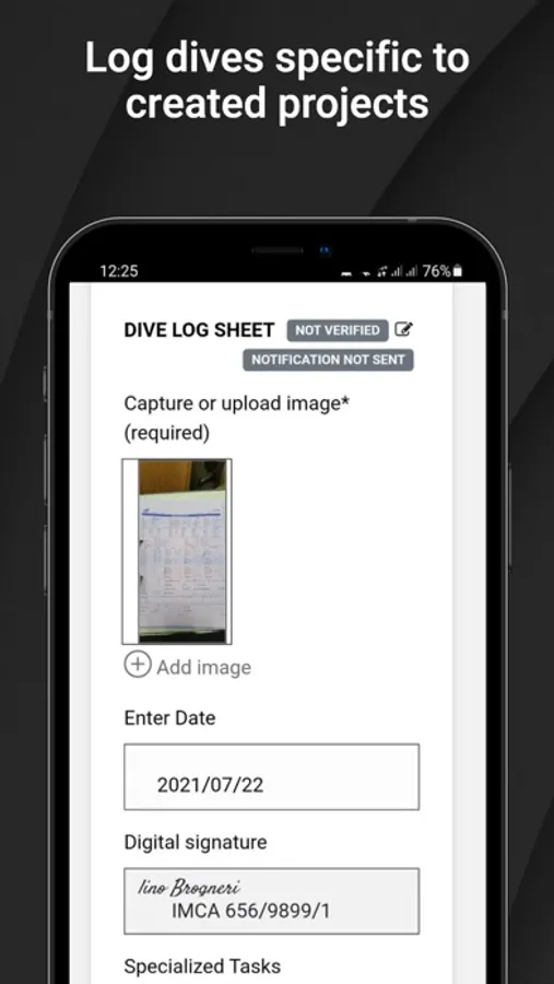 Send your completed log sheet to the supervisor on duty for verification via your app. Once verified a digital stamp will display across the log sheet submitted.