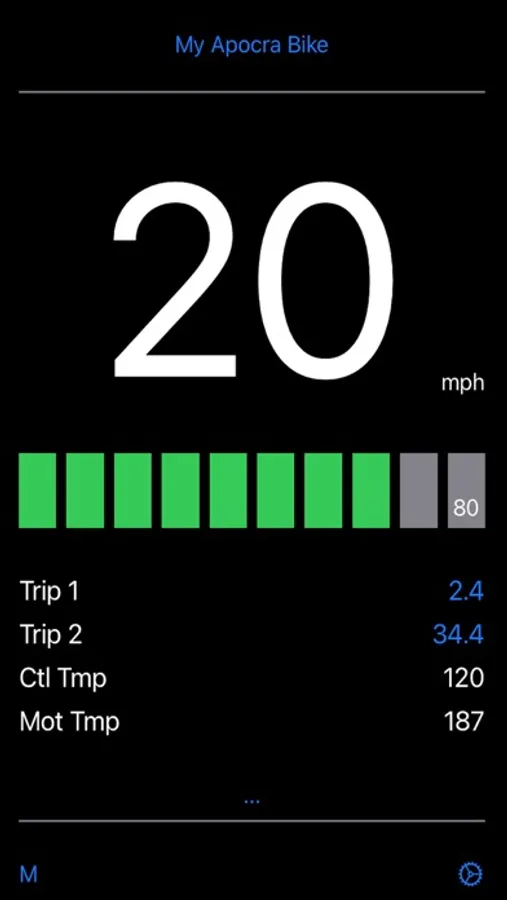 You can use it to see status information such as battery charge and cell balance state, odometers, current speed and other runtime metrics. You can give your bike a name so you can easily identify it amongst other Apocra bikes and you can configure your bike to work differently such as toggle regen braking or select your preferred power level.