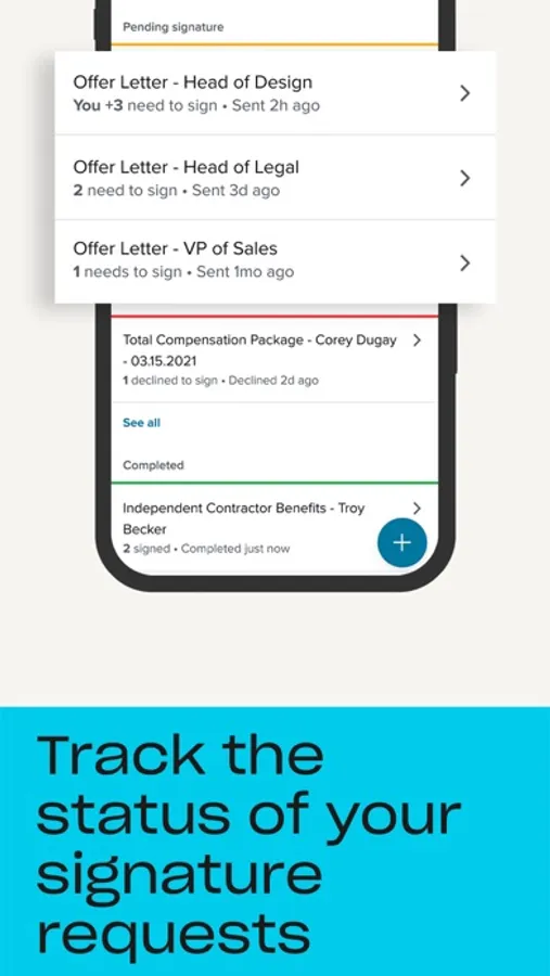• Track status: Save time—and get peace of mind—with document status updates straight on the home screen. Check the status of sent requests and send reminders to ensure your workflows stay on track.