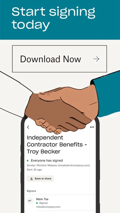 The Dropbox Sign mobile signature app is the fastest way to request signatures from the convenience of your phone, so nothing gets in between you and that next signed agreement. After all, work doesn't stop when you're away from your computer. Dropbox Sign streamlines your document workflows by helping you prepare, send, sign, and track agreements with legally-binding eSignatures.