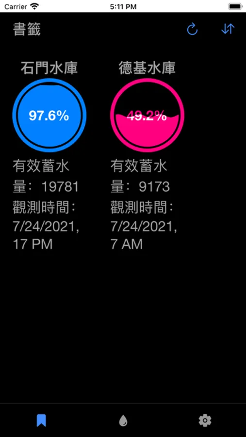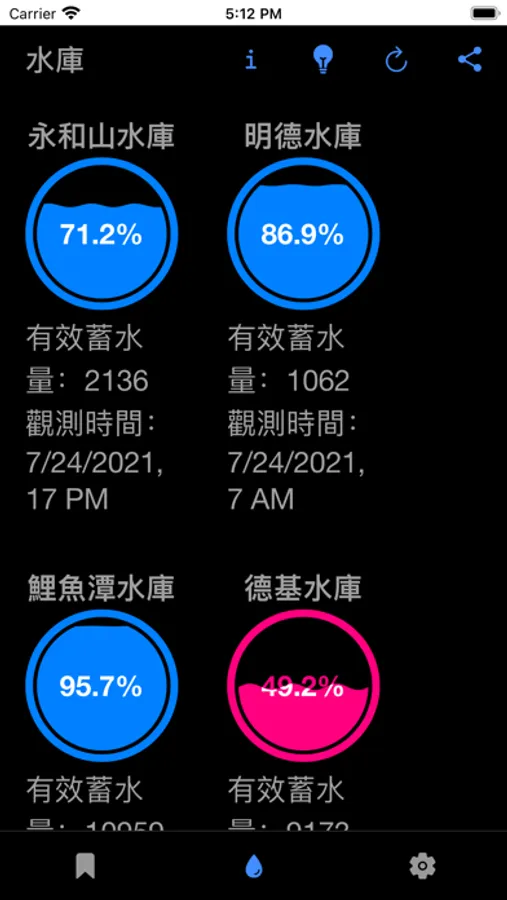 * 台灣水庫資訊 app 可查詢水利署提供的水庫最新蓄水資訊。