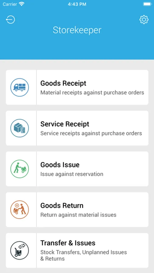 - Leverage native QR/Barcode scanning to perform storeroom activities