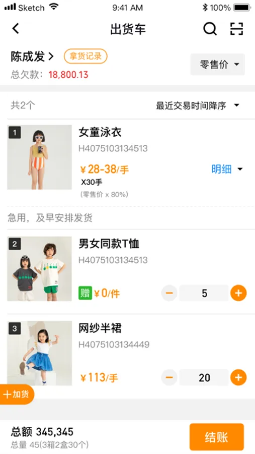 扫码或选择货品,即可下单,自动计算,自动记账,订单自动跟踪!