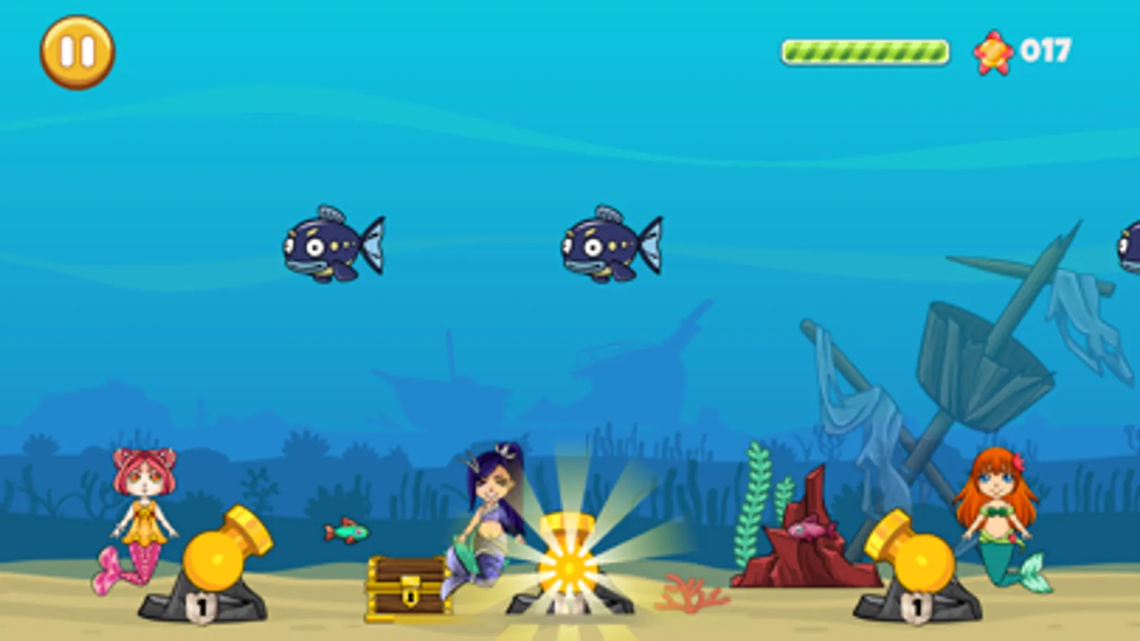 This precision based shooter has players taking control of an army of magnificent mermaids. Get into position and fire your bubble cannon at an array of enemy fish, sharks and a few other surprises. Collect coins to reload. Dodge mines and torpedos and whatever you do, don't touch anything that glows in the dark!