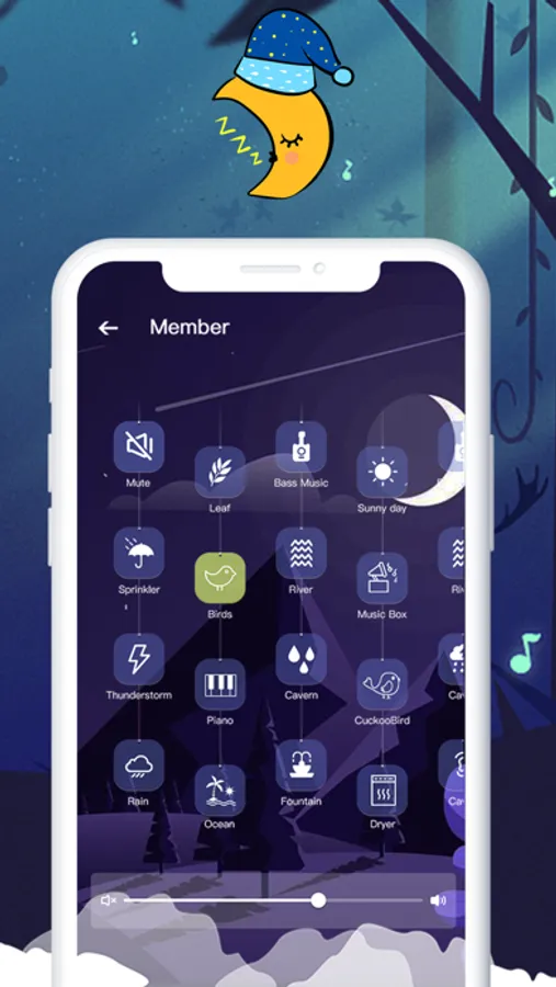 This application should be used in conjunction with a smart physical device. It has night & forest sounds, wave, rain & thunder, brook, chimes, and birds singing sounds. It is easy to control brightness, set timer/sleep timer, change colors, and so much more.