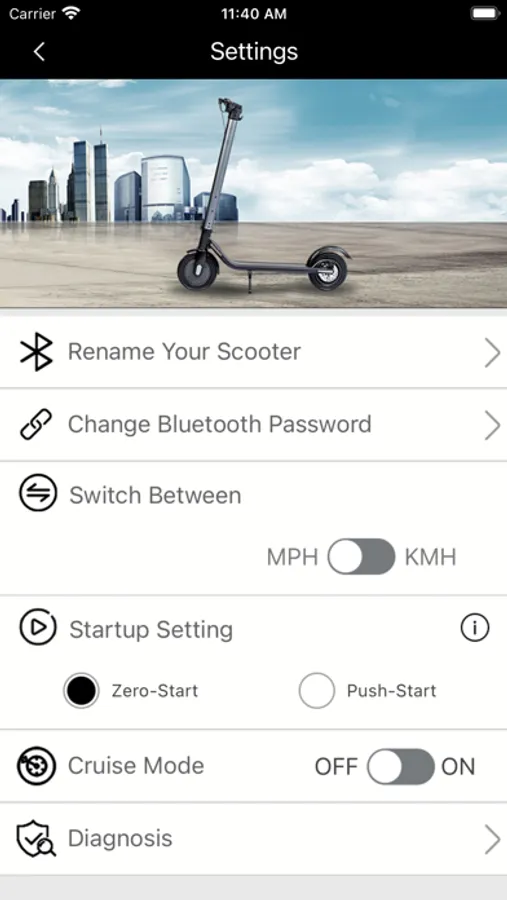 3. The App can also control the vehicle's headlights, speed mode, cruise mode, startup setting, etc..