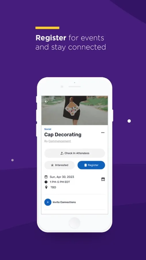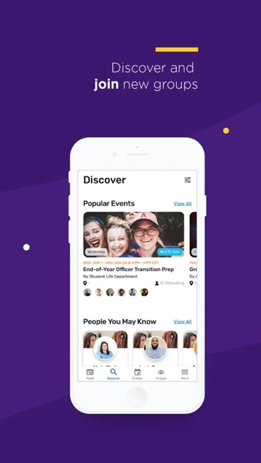 Easily browse and RSVP for upcoming events, join organizations, and share news with your network. Also, find and access resources on campus. Key features include: