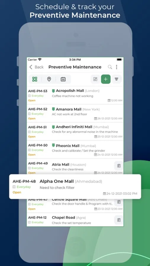 Add schedule and activity for the assets and hardware to maintain care before machine failure/breakdown occurred for the multiple assets with the location basis. Create a schedule for daily, weekly, monthly, annually, custom activities.