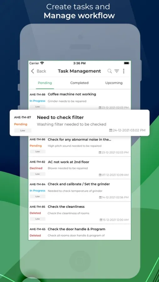 Create a task to complete the assessments and activities for cleaning, maintenance, schedule services. And let you know the status in the dashboards.