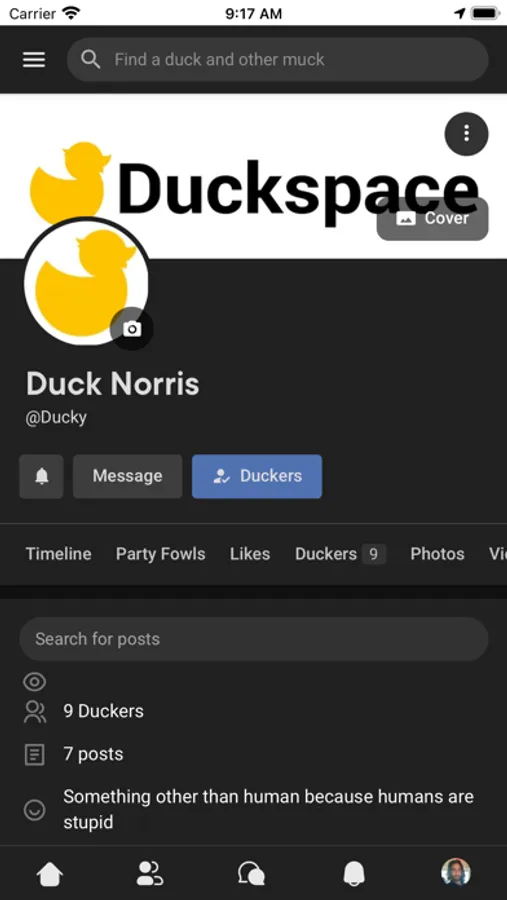 Here at DuckSpace Comments are Breadcrumbs, Groups are Party-Fowls and friends are Duckers.