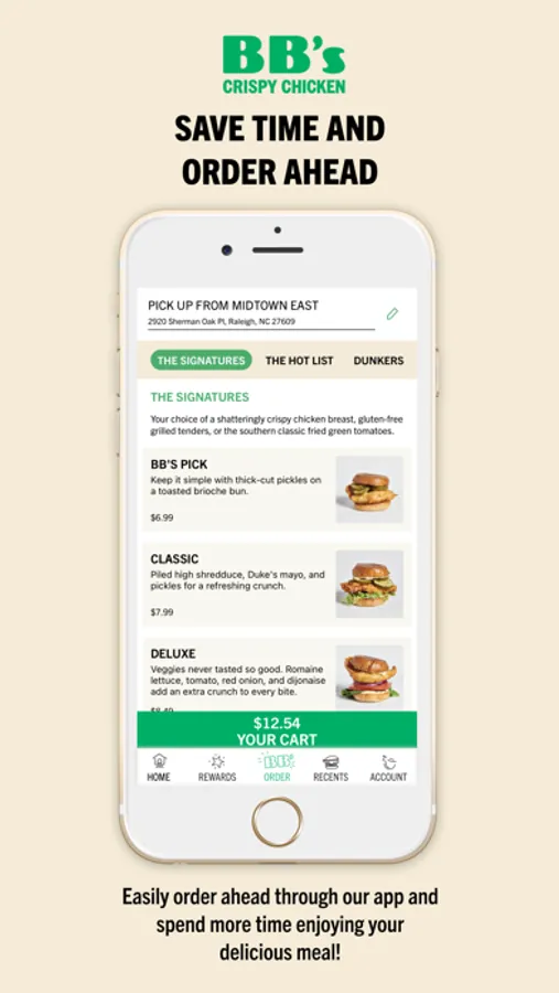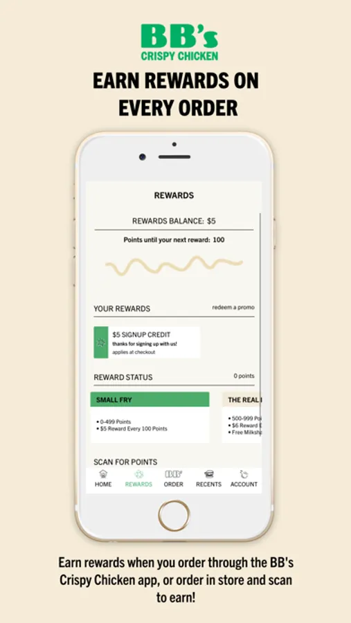Order ahead. Skip the line. BB' rewarded with each purchase. The BB's Crispy Chicken app gives you shatteringly crispy chicken at your fingertips. Making ordering easy—your choice of grab 'n' go, curbside, and delivery all available. Convenience is our core, but quality ingredients and chef-crafted recipes are the special sauce.