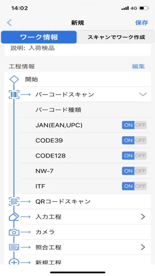JAN(EAN,UPC).・CODE39・CODE128・NW-7・ITF・GS1-128 計 6 種類のバーコードを読取ることが可能です、ON/OFF設定で読み込むバーコード種類の制御が可能になります。