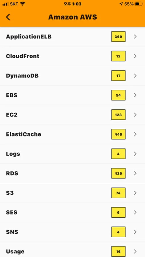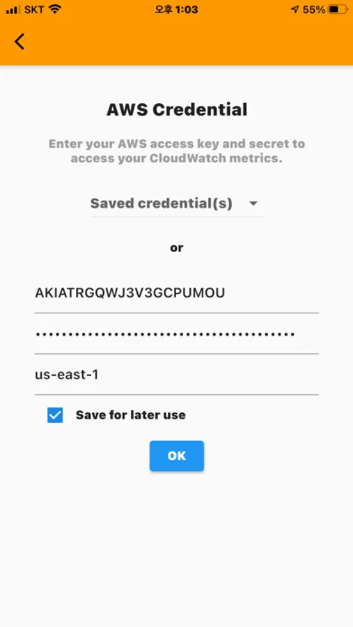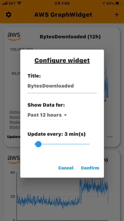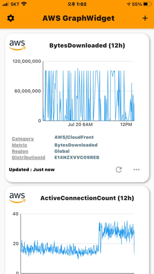 Using your AWS access key and secret access key you can add AWS CloudWatch graphs to the main screen of the app. These graphs can be added to your iPhone home screen.