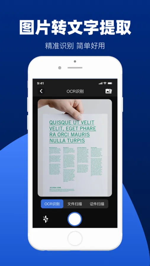 图片转文字是一款手机扫描文字识别软件,可以文件识别和文件扫描,实现图片提取文字,扫描证件和文件等功能。扫描包括文件扫描、纸质文件扫描、证件扫描、图片扫描等,可生成高清PDF进行水印、签名、色彩的编辑和导出。快速识别图片里的文字进行翻译、编辑、导出。