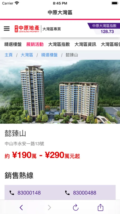 中原地產作為粵港澳大灣區內強大的地產代理行之一,以多年的灣區代理經驗配合專業團隊,為您提供灣區9市2區精選樓盤、展銷資訊、中原大灣區指數、大灣區資訊和置業指南,助你於灣區投資置業。立即下載體驗!