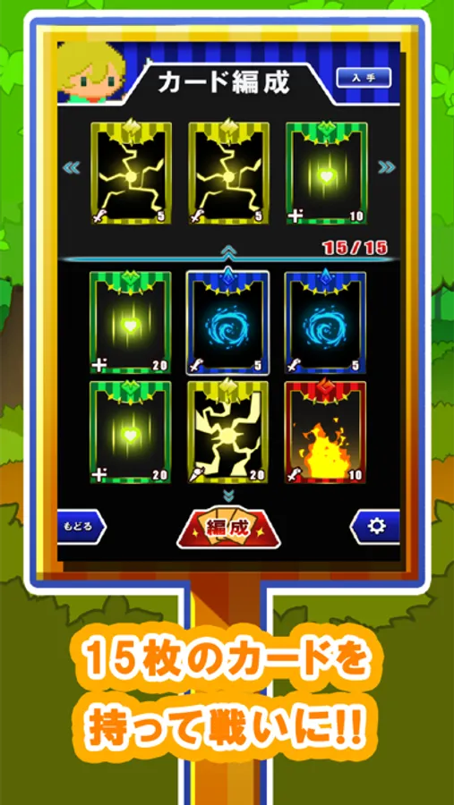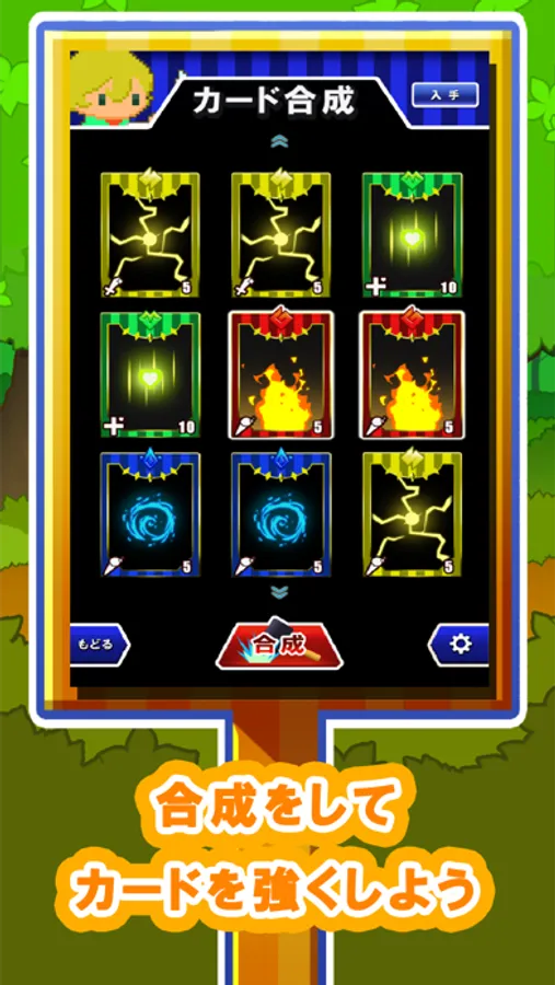 ドロップしたカードは持ち帰って同じカードどうしを合成して強化!