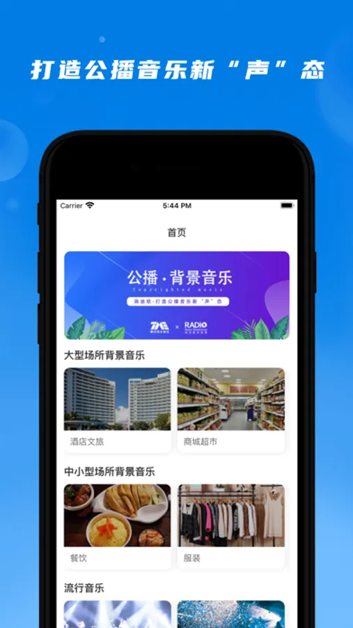 公播音乐,是一款专为公播设计的播放软件。并根据商家业态需求量身打造环境音乐、背景音乐,个性化定制声音名片,口语录播,声音logo等。提供集团级的播放管理控制,实现单店/多店/不同分区的广告、广播、音乐的智能播放。