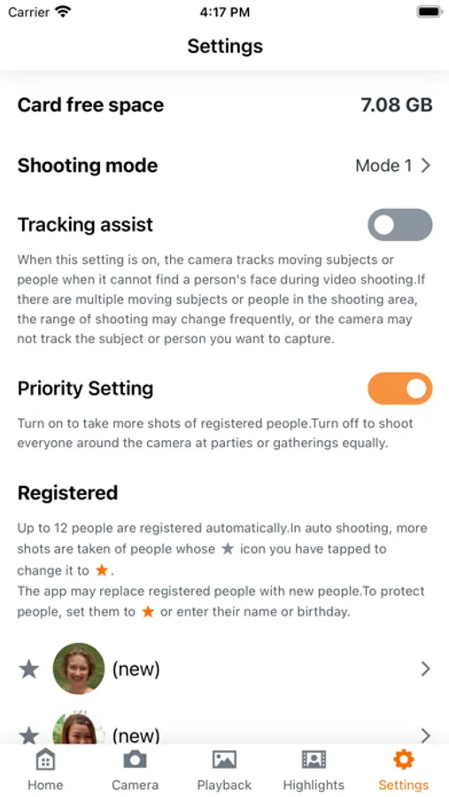 ・Add people automatically registered by the camera as favorites and set their shooting priority.