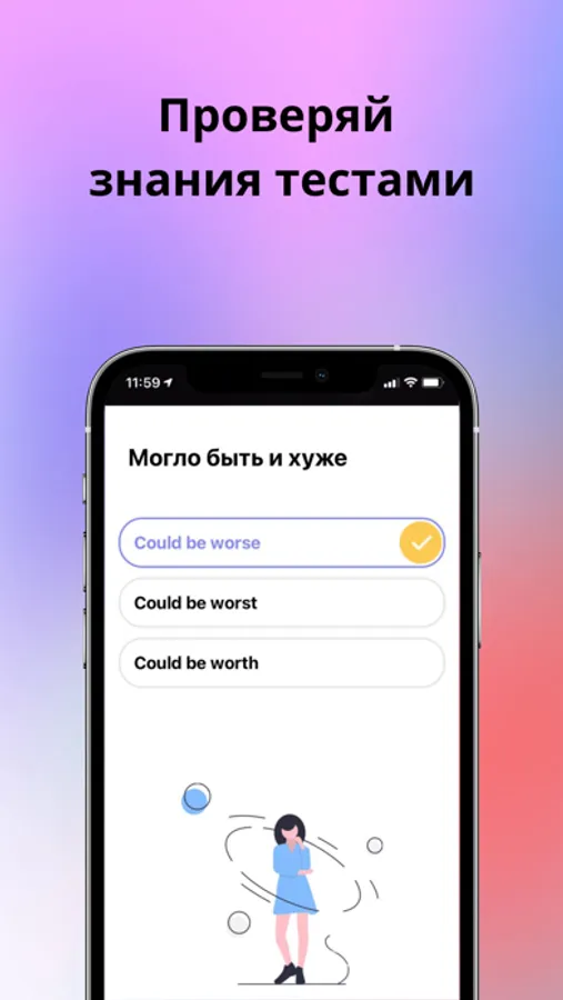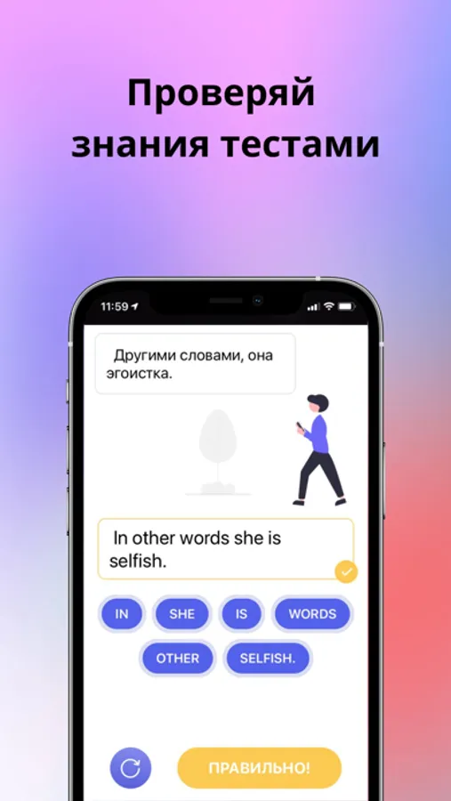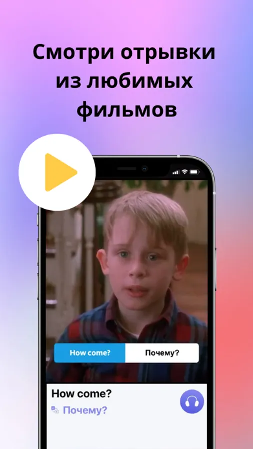 Мы отказались от скучных уроков в пользу интересных видео - нарезок из популярных фильмов, мемов, актуальных примеров и всего несколько мини-тестов для закрепления знаний к каждой фразе.