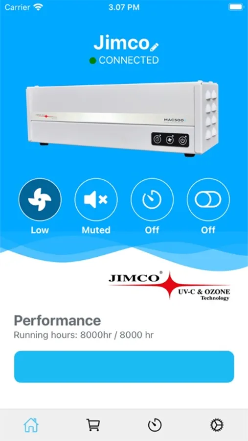 Jimco App that allows control of OZ1000 or MAC500s ble enabled devices. App provides remote control functionality and performance metrics to your phone.