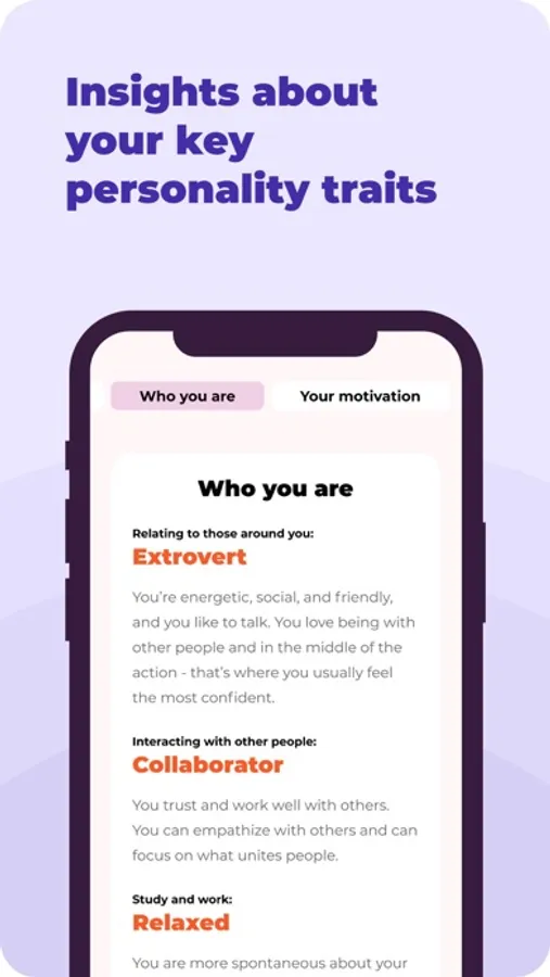 - insights about your key personality traits
