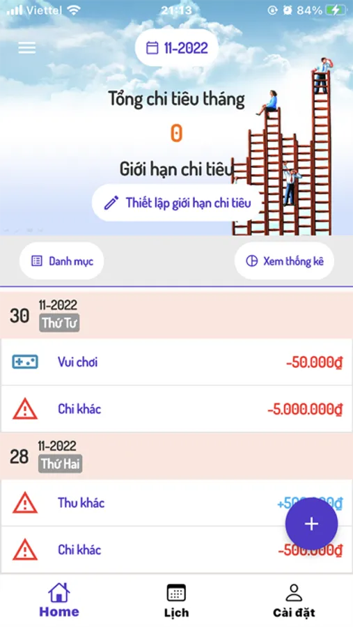 - Tạo hạn mức, Thêm bớt chi tiêu trực quan