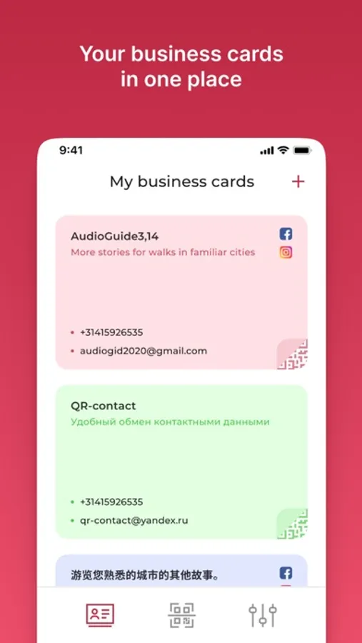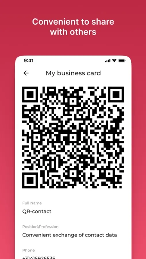 Create, update and share your contact information with partners, colleagues and friends using a QR code.