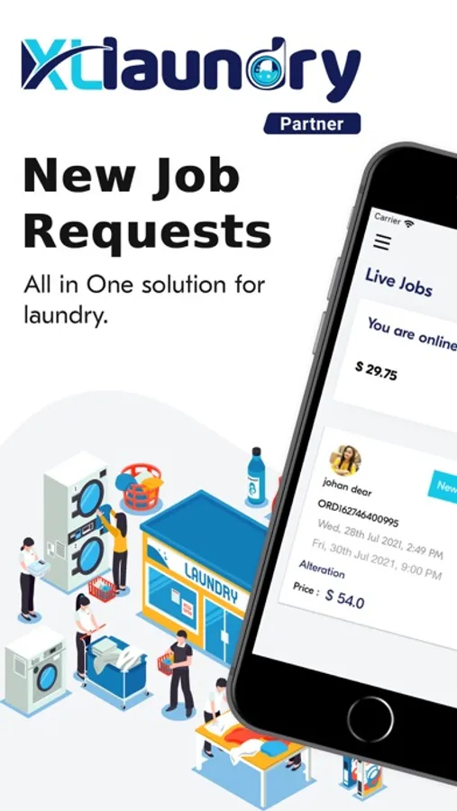 XLLaundry Partner is on-demand laundry shop app developed by XongoLab Technologies LLP. Shop owners can receive order request of laundry services from their customers , customize orders and send for approval as well as assign driver for pickup & delivery.