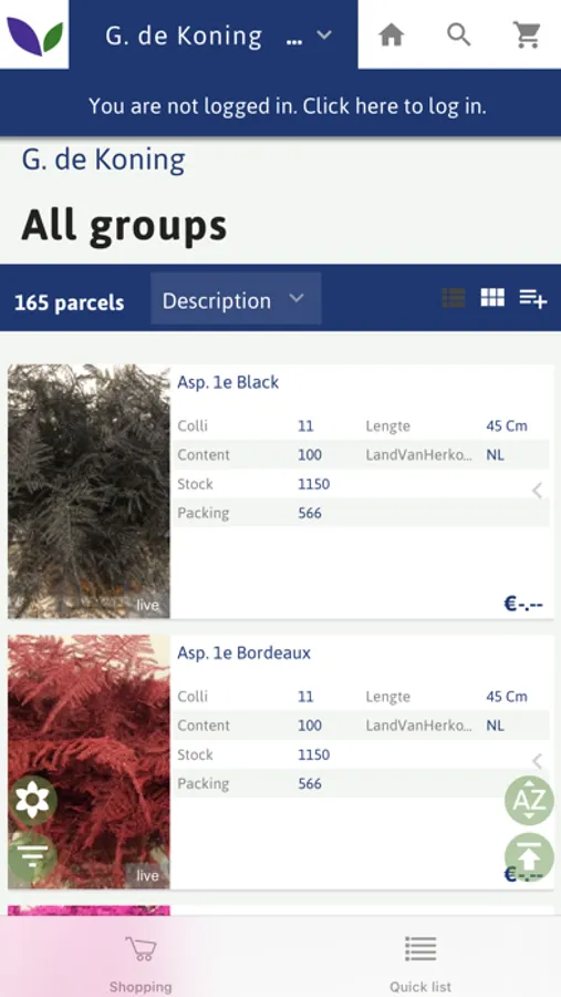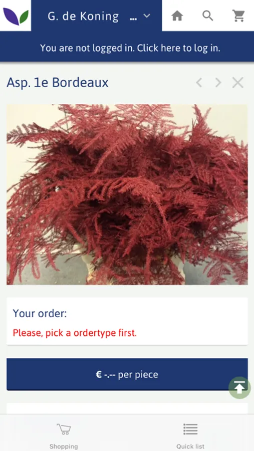 Met deze App koopt u snel en eenvoudig de volmaakte bloemen in de perfecte kleur. Wij bieden u de mogelijkheid om bijna alle soorten bloemen te verven. Met uw login gegevens swiped u razendsnel door ons assortiment. Nog geen login? Ga naar www.gdekoning.nl en neem contact met ons op.