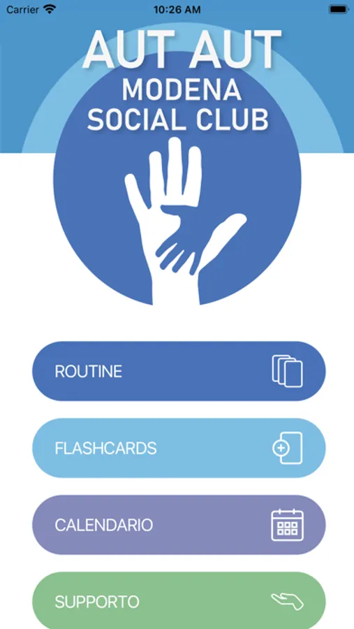 L'applicazione AUT AUT Modena Social Club è un sostegno e un aiuto quotidiano alle famiglie con soggetti affetti da autismo. Attraverso funzionalità come Routine, Flashcards e Supporto entra a far parte della gestione quotidiana di ragazzi affetti da autismo. Inoltre prevede un calendario integrato dove possono essere inseriti eventi o attività in programma.