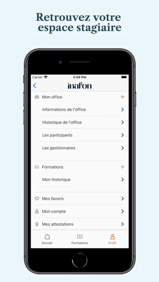 Connectez-vous à votre espace personnel pour retrouver vos favoris, vos ressources pédagogiques (supports de cours, quiz...) et accéder à vos attestations.