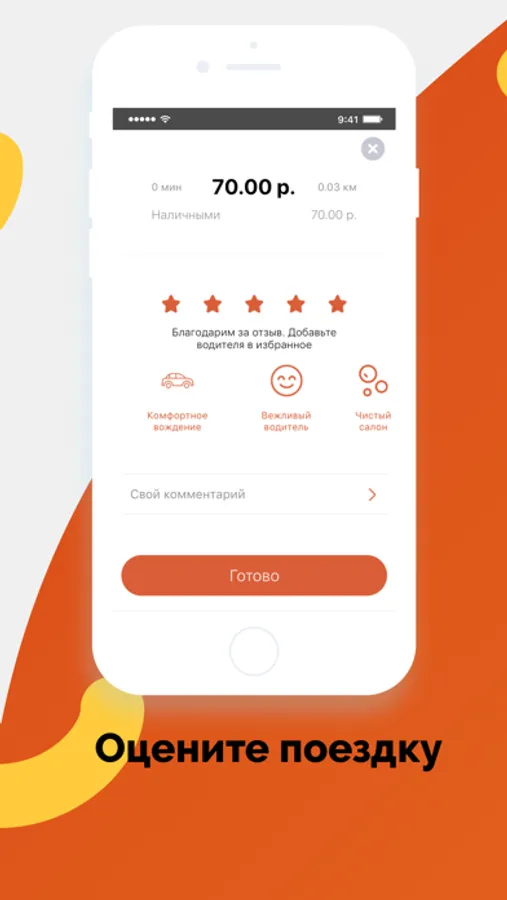 Поставьте 5 звезд водителю, выберите один или несколько готовых шаблонов для оценки или оставьте свой комментарий о работе приложения.