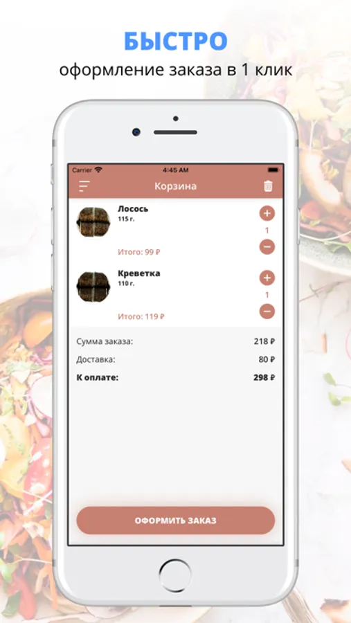 — удобная корзина и быстрое оформление заказа,