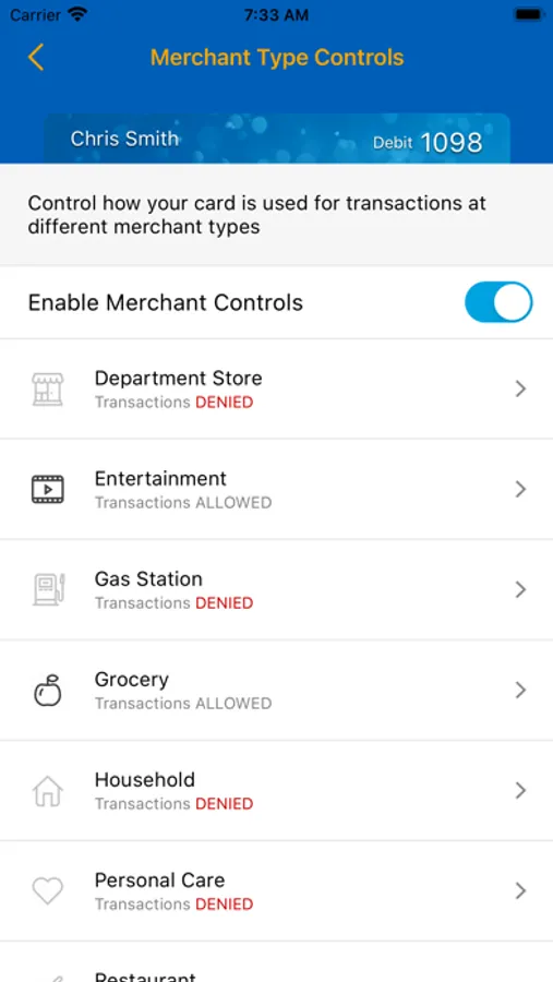 • Establish transaction controls for dollar amount limits, merchant categories and geographic locations