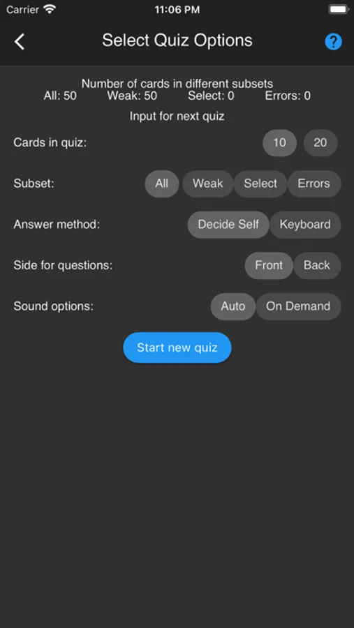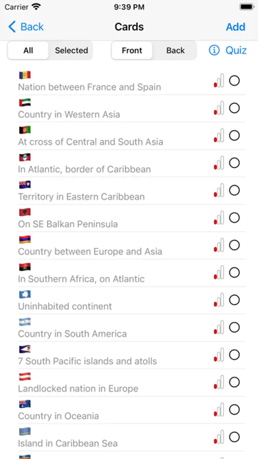 For each card, audio clips are included for both the front and the back (thus giving approximately 4 hours of audio for each language - in the full version of the app). The audio for the French and Spanish was recorded by first language speakers, the English audio was recorded by a second language speaker and the German audio was recorded by a third language speaker.