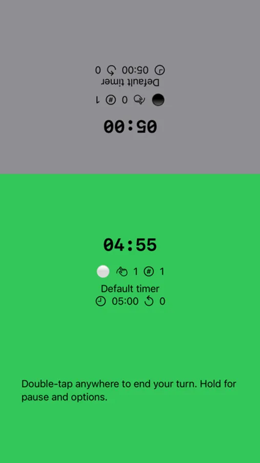 - Portrait layout with inverted messages: Lay your iPhone/iPad on the table for both players to be able to read their remaining times.