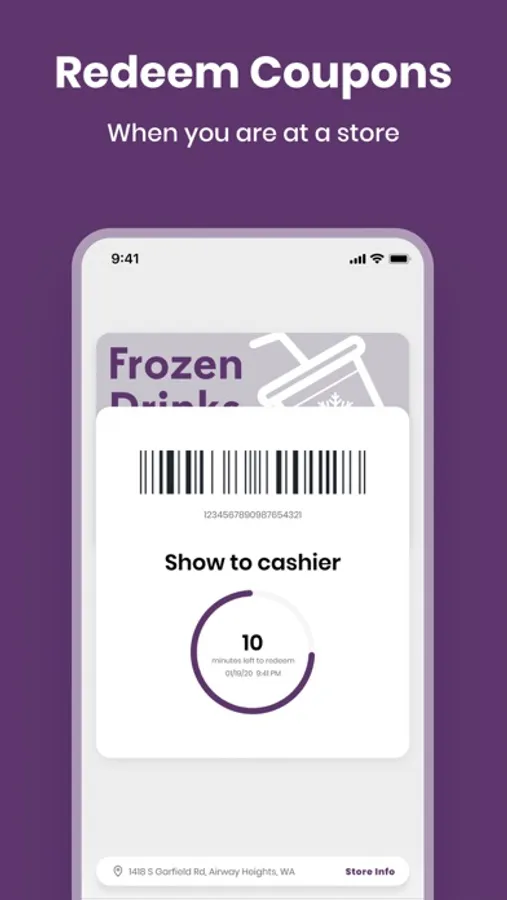 Simply tap the orange redeem button and show your phone at purchase to redeem your coupons.