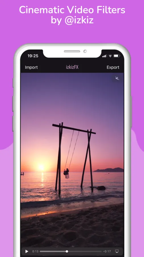 izkizFX is a magically fast and beautiful way to create amazing videos for your social media postings. Filter your video clips and turn them into a work of art.