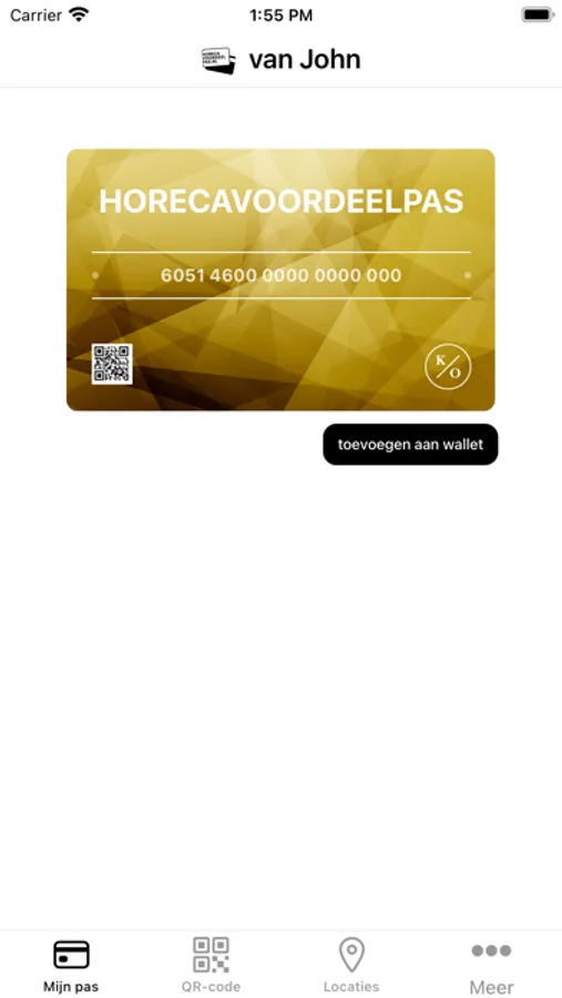 Met deze app kunnen personeel en relaties van K.O. Company korting krijgen op nagenoeg het hele assortiment bij de horecazaken binnen onze organisatie. Deze card is persoonsgebonden en wordt geactiveerd na goedkeuring.