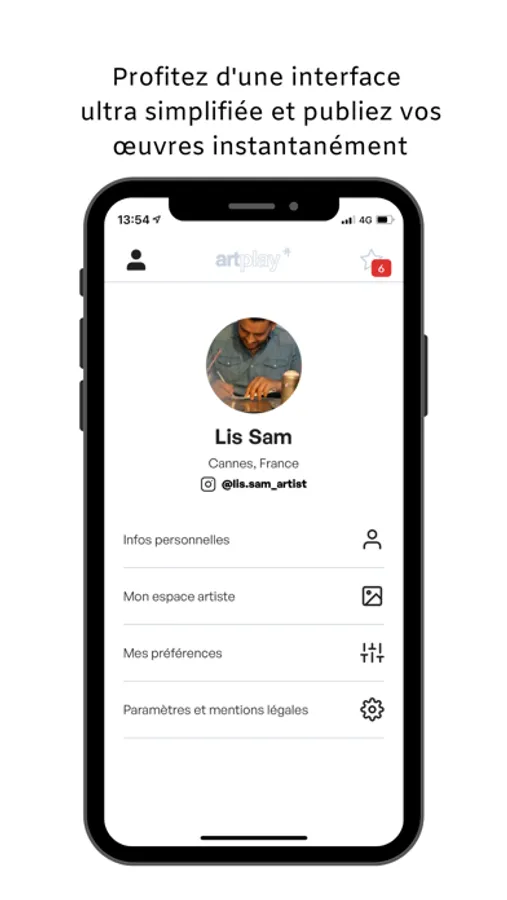 Créez votre profil en moins de 30 secondes et découvrez immédiatement les œuvres des artistes, d’un coup d’œil, les unes après les autres.