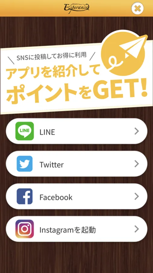 EsperanceのアプリをSNSを通じてお友達に紹介する事ができます。